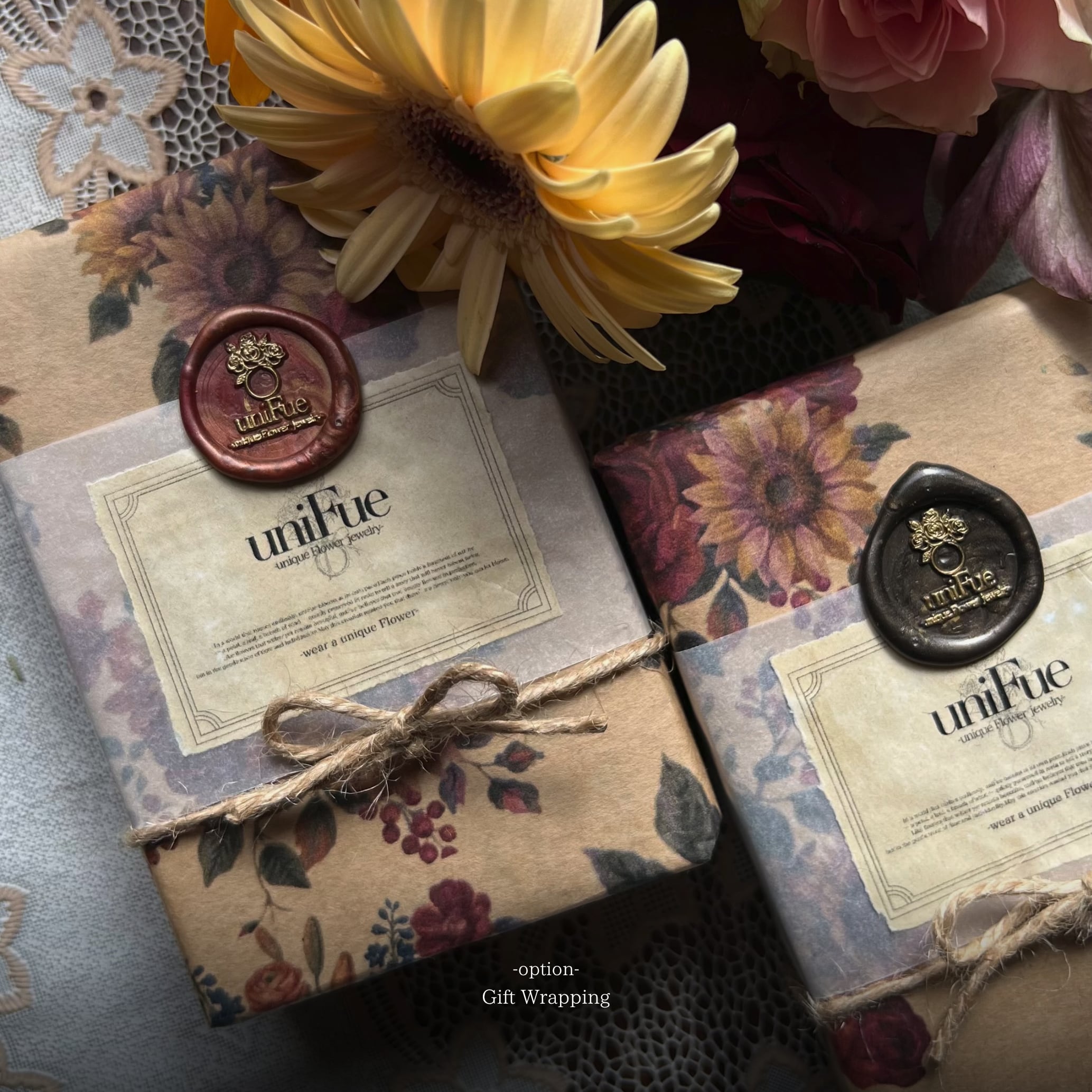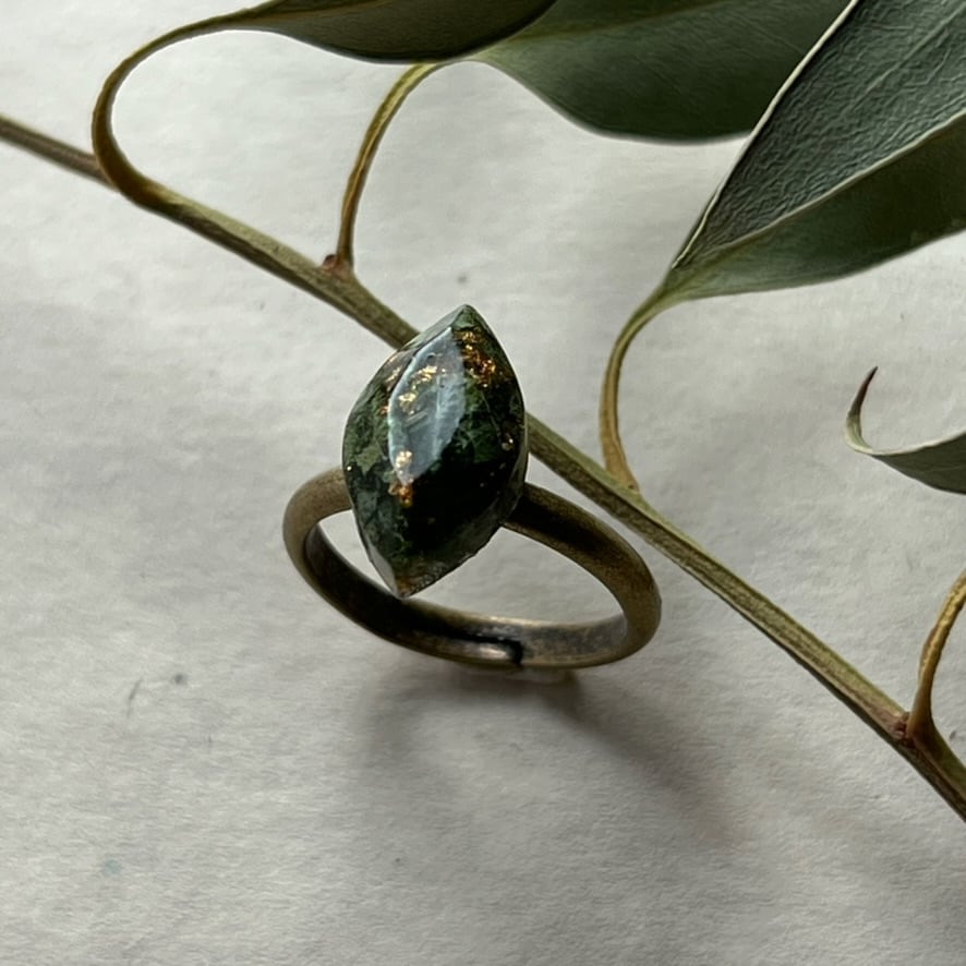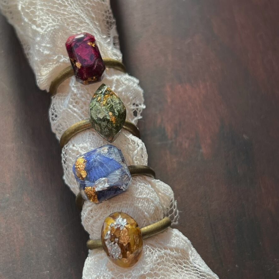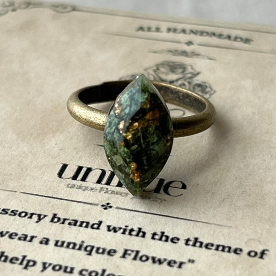 花びらと金の箔で彩った、uniFueらしいアートリング。