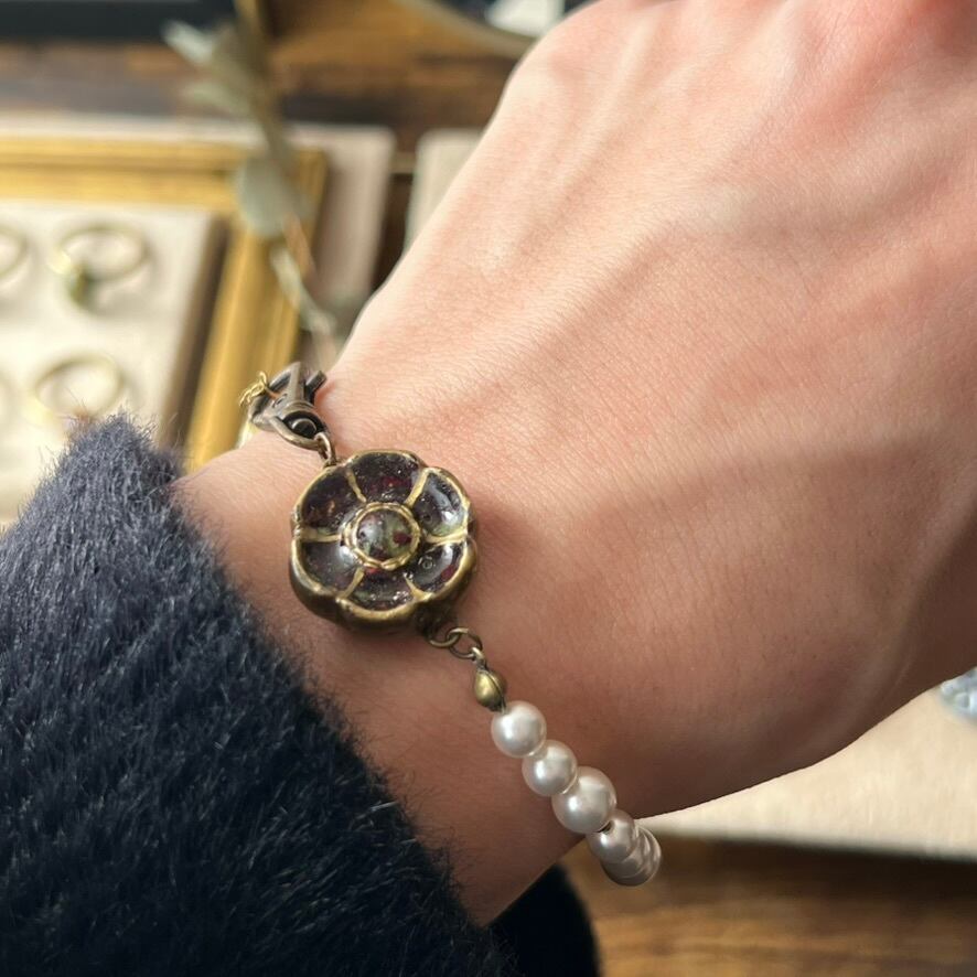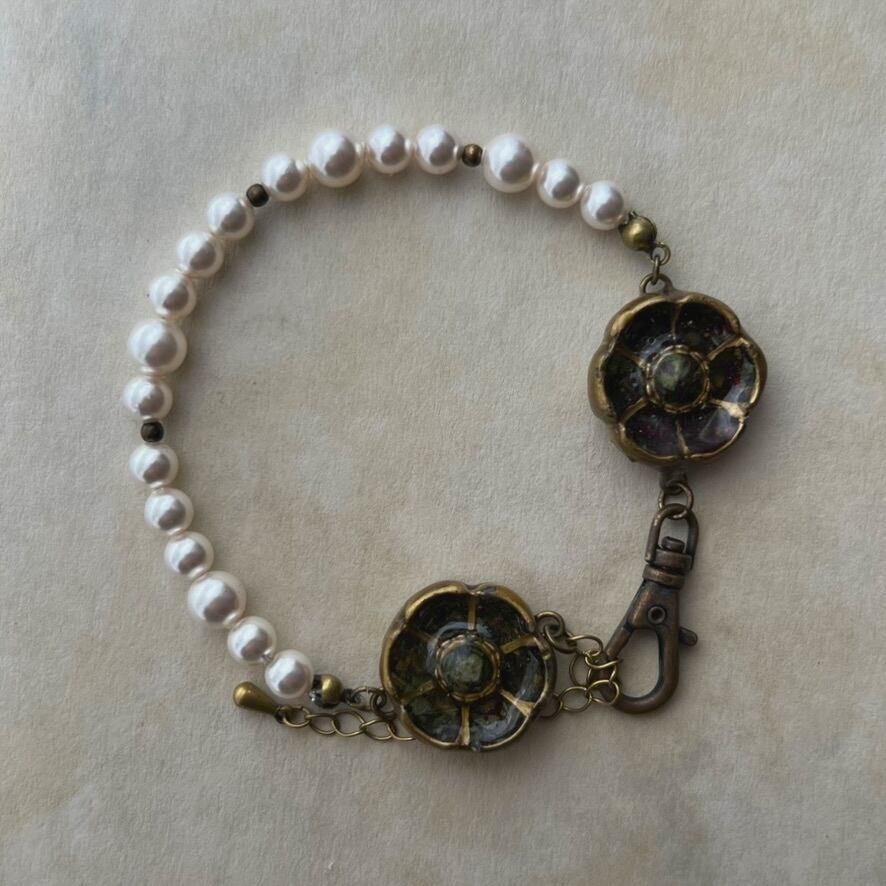 不揃いのグラスパールを組み合わせたブレスレット。