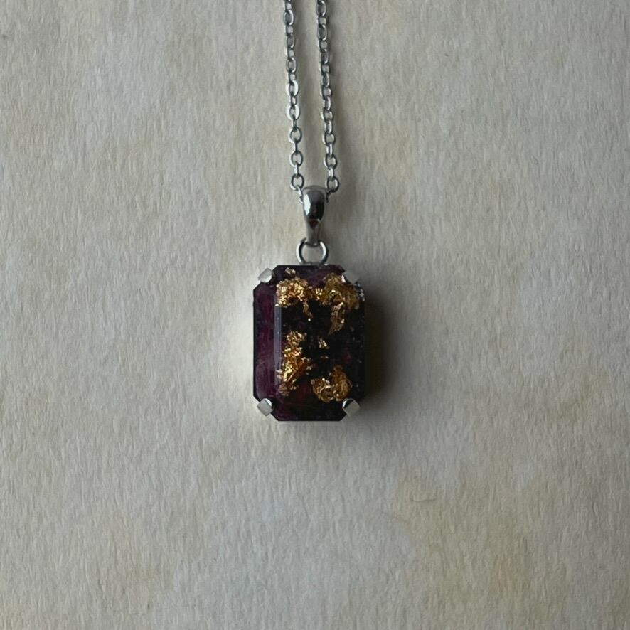 花びらをぎゅっと閉じ込めた、静かに輝くネックレス。