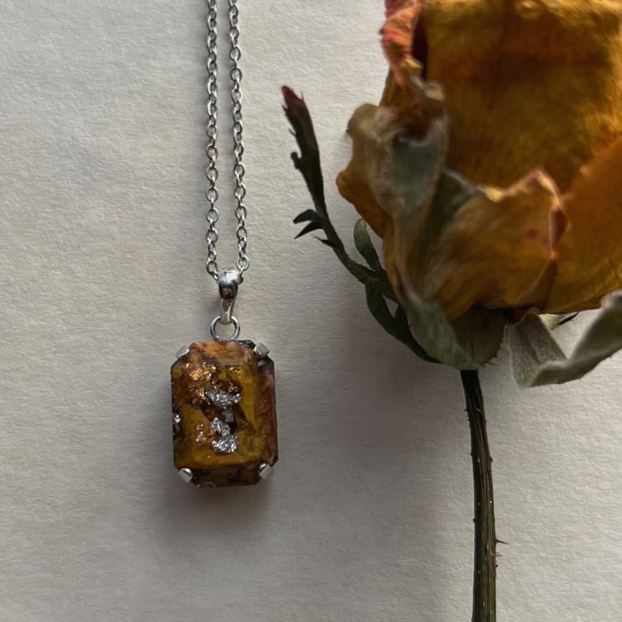 花びらをぎゅっと閉じ込めた、静かに輝くネックレス。