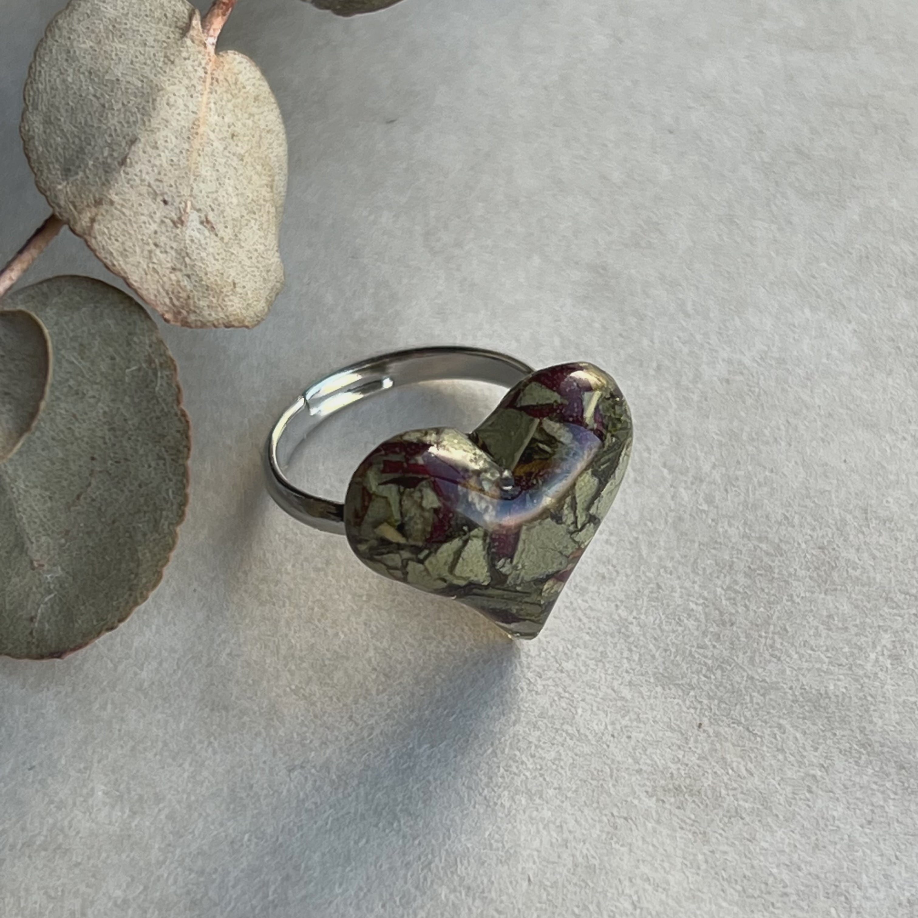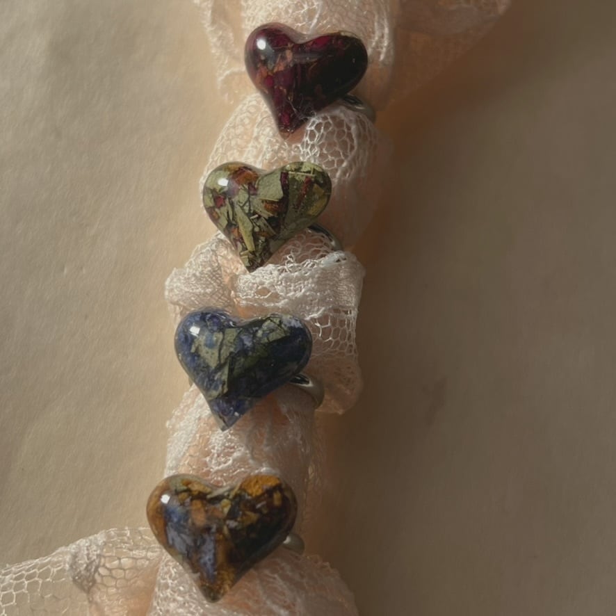 花を閉じ込めた、静かな緑のハート。